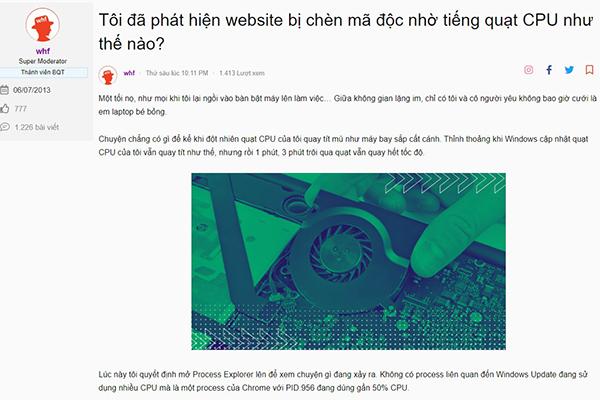 Đây là câu chuyện thực tế của một người dùng Việt Nam khi anh vô tình phát hiện máy tính của mình bị chèn mã độc nhờ sự bất thường trong tiếng quạt.