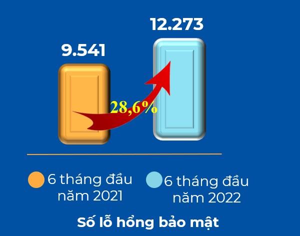 Theo thống kê mới nhất của Bộ TT&TT, trong 6 tháng đầu năm nay, đã có 12.273 lỗ hổng bảo mật được phát hiện ở Việt Nam, tăng tới 28,6% so với cùng kỳ năm trước. Không chỉ vậy, số lượng website lừa đảo bị chặn trong 6 tháng đầu năm là 674 website, tăng 13,1% so với cùng kỳ 2021.