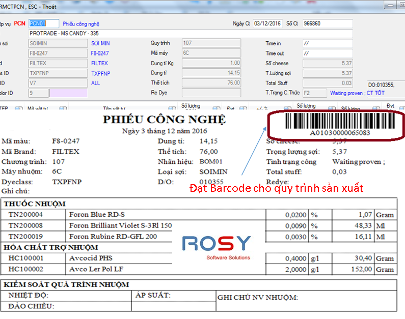 ERP ROSY quản trị sản xuất Nhuộm: Đơn đặt hàng - Kiểm tra NXT tồn kho - Cân đối NPL - Tạo PO - Lệnh sản xuất - Cấp phát vật tư - Xếp lịch sản xuất theo máy.