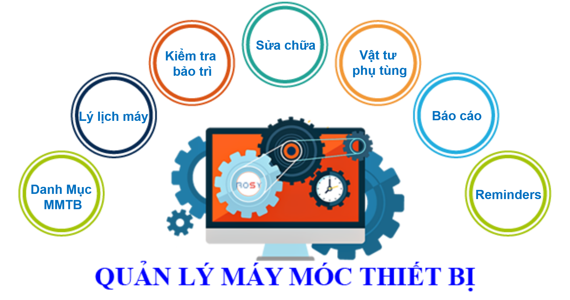 Những tiện ích cần có của một phần mềm Quản lý Máy móc chuyên nghiệp được tích hợp đầy đủ trên phần mềm ERP ROSY như: