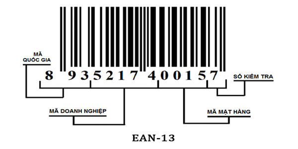 Mã vạch hiện nay EAN - 13 là dãy số gồm có 4 nhóm số chính: