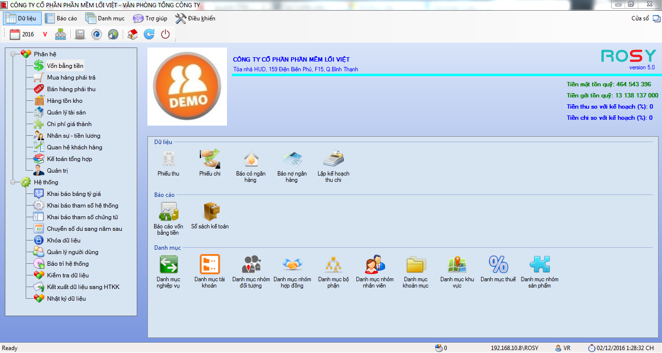 Giao diện phần mềm ERP ROSY