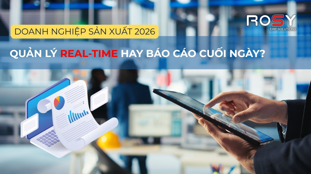 Doanh nghiệp sản xuất 2026 nên ra quyết định theo thời gian thực hay tiếp tục dựa vào báo cáo cuối ngày? Phân tích xu hướng quản trị dữ liệu và vai trò của ERP trong sản xuất.