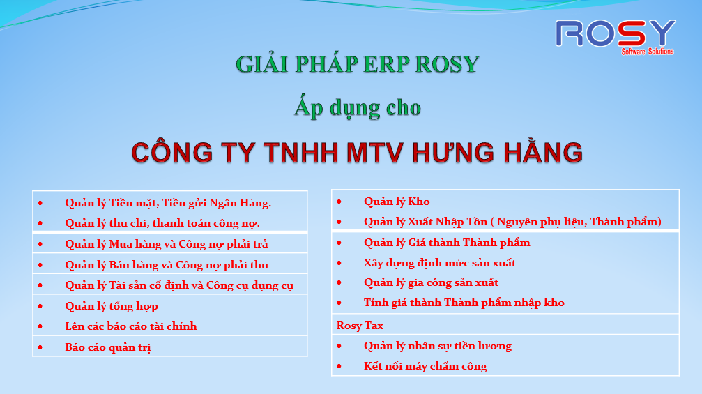 "Giải pháp ERP ROSY áp dụng tại Hưng Hằng Logistics"
