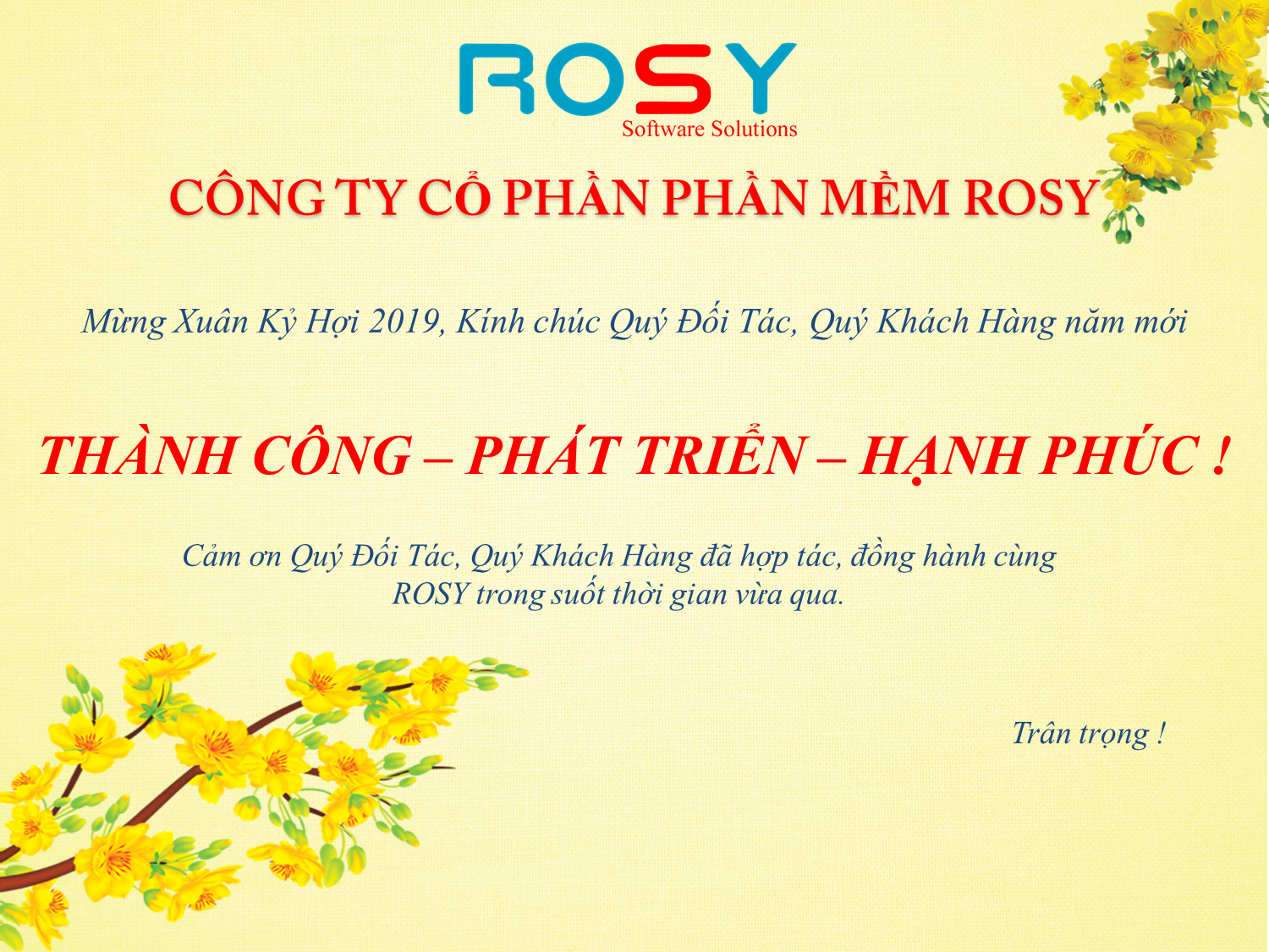 ROSY xin gửi lời Chúc Mừng Năm Mới - Xuân Kỷ Hợi 2019 đến Quý Khách Hàng, Quý Đối Tác.