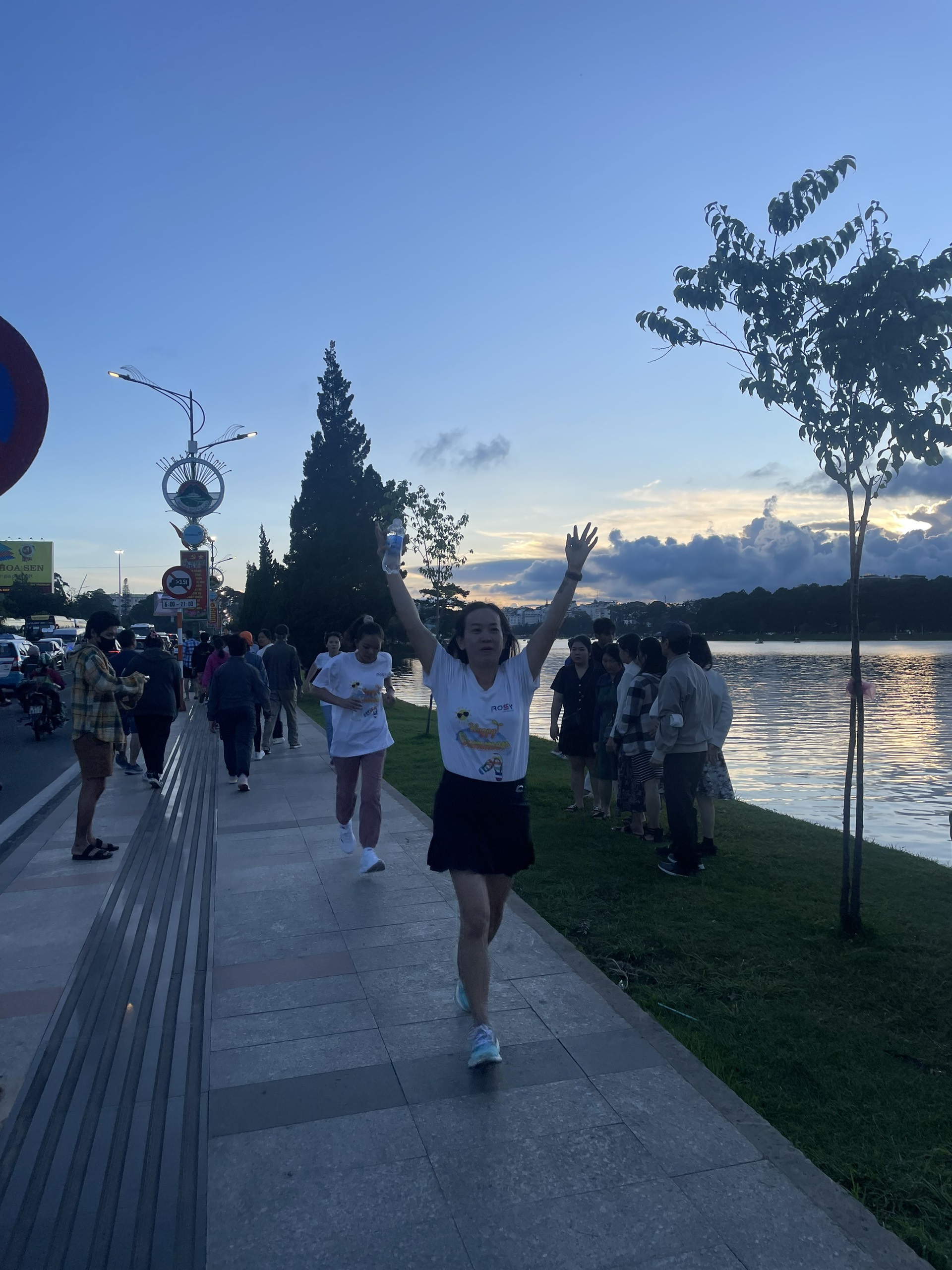 Buổi chiều, cả đoàn tập trung tại Hồ Xuân Hương để tham gia hoạt động chạy bộ xung quanh hồ. Với không khí trong lành và khung cảnh thơ mộng, buổi chạy bộ không chỉ giúp tăng cường sức khỏe mà còn mang lại những giây phút thư giãn sảng khoái.