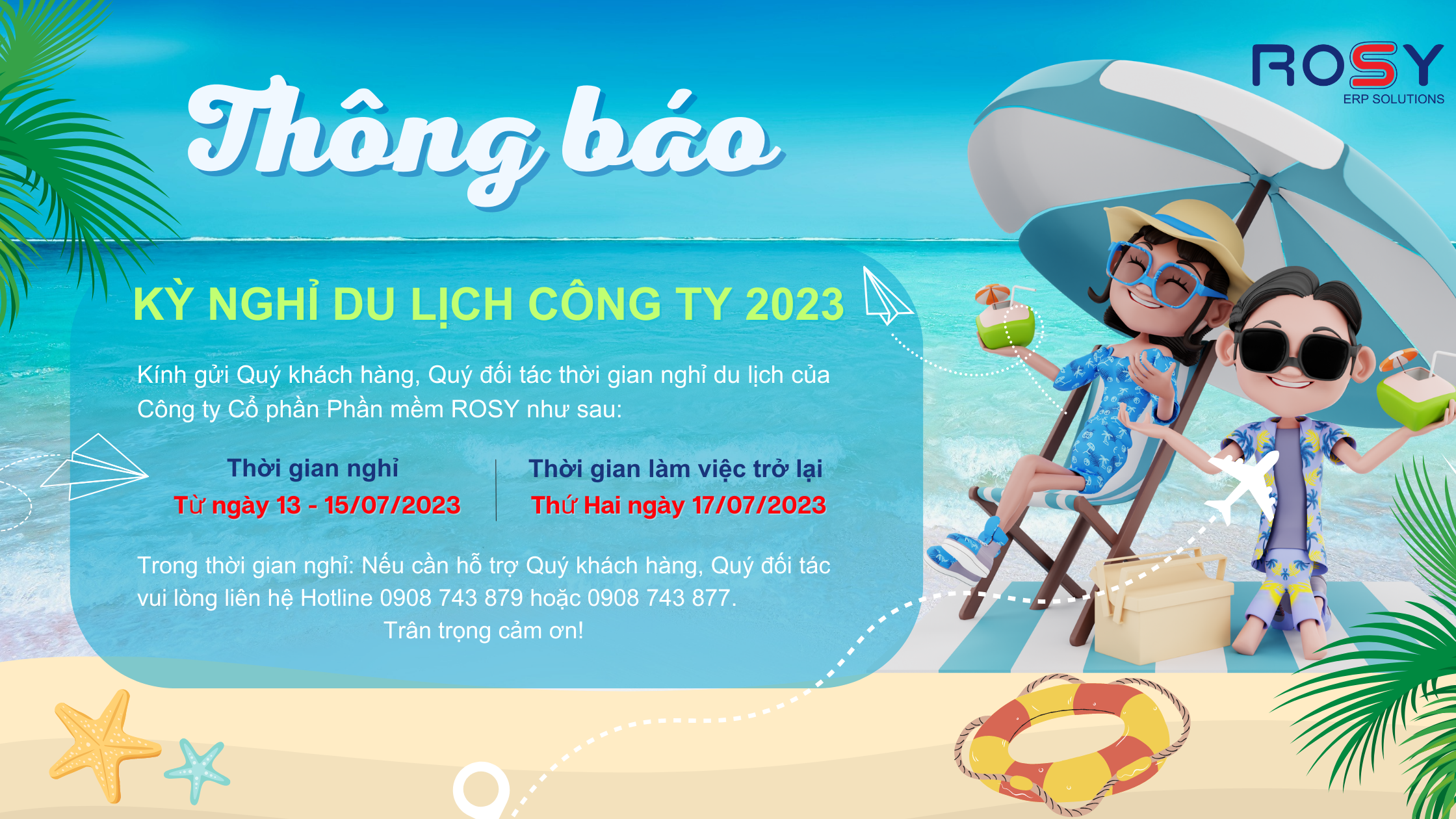 Nhằm tạo điều kiện cho nhân viên có thời gian thư giãn, tái tạo năng lượng và làm việc hiệu quả, ROSY ERP xin trân trọng thông báo về kế hoạch nghỉ mát của công ty trong năm 2023 như sau: