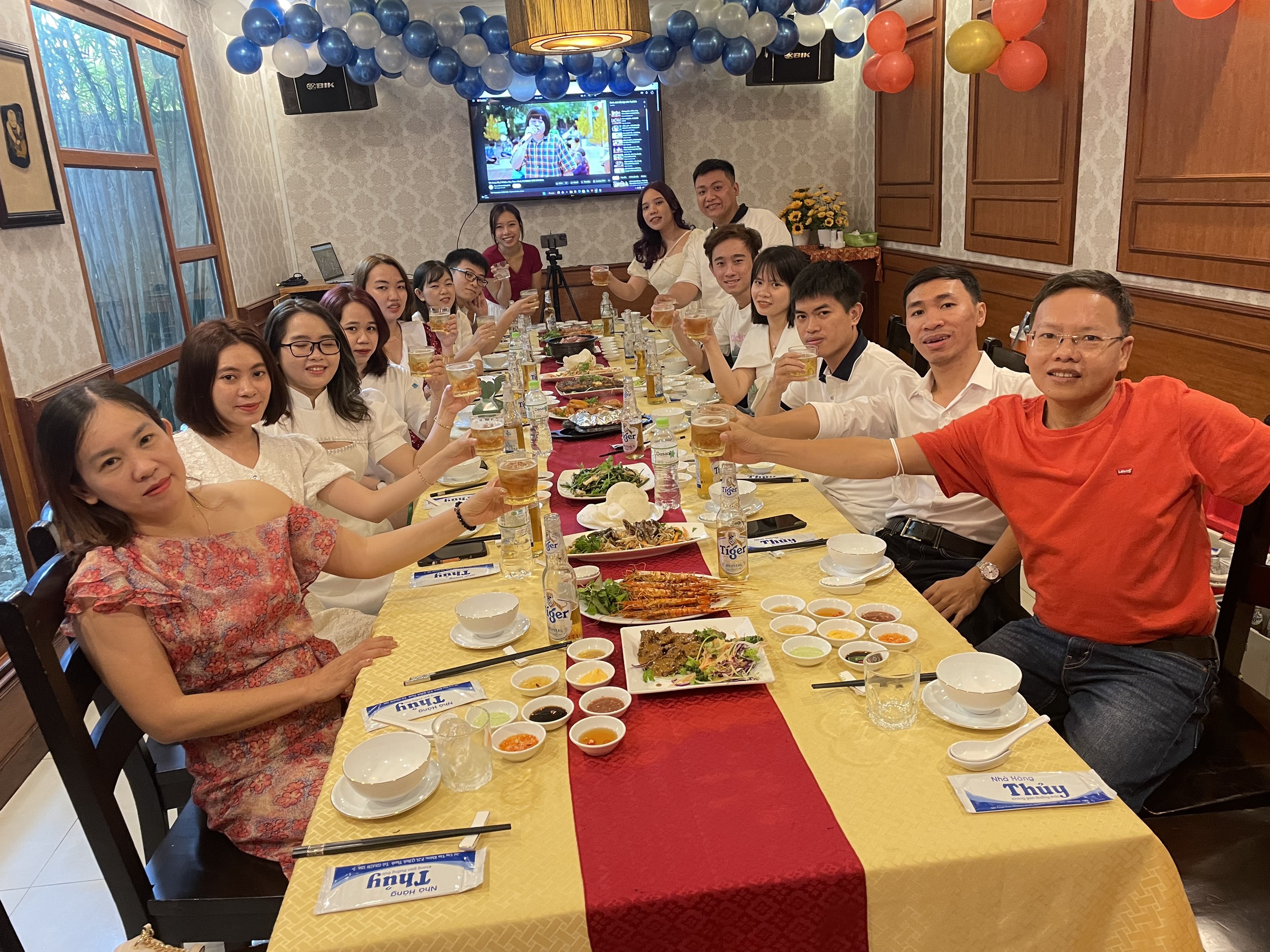 Chụp một tấm tập thể trước khi đi ăn tiệc nè