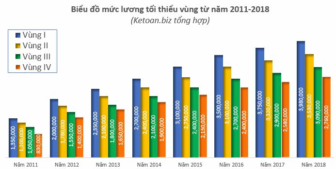 Mức lương tối thiểu vùng từ năm 2011 đến năm 2018 tăng hơn 194%, trong đó mức tăng từ năm 2011-2014 đã là 100%.